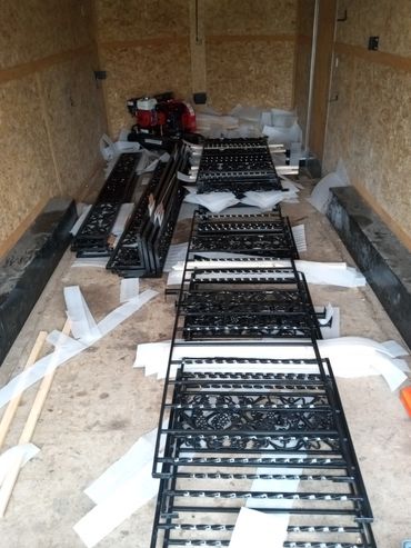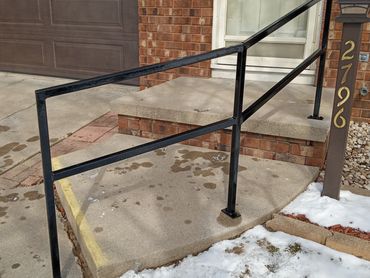 Simple to elaborate railings and handrails. Built to last decades. 1/8" wall thickness newel posts. Option to sandblast and paint or hand paint oil base as shown above.